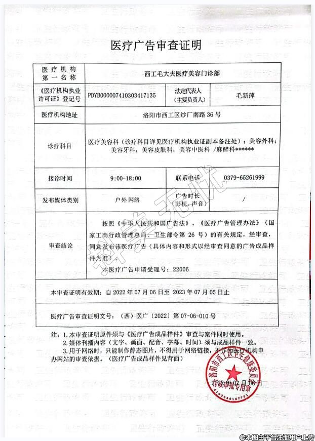 發(fā)證機(jī)關(guān):洛陽(yáng)市西工區(qū)衛(wèi)生健康委員會(huì)