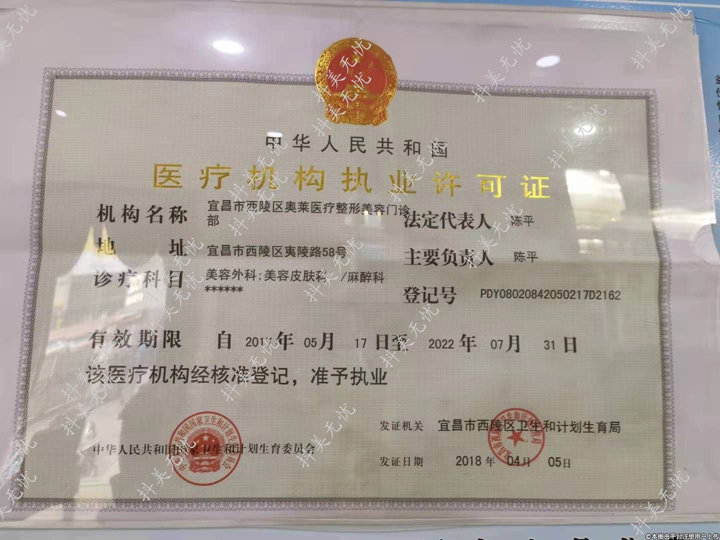 醫(yī)療機構(gòu)名稱:宜昌市西陵區(qū)奧萊醫(yī)療美容門診部