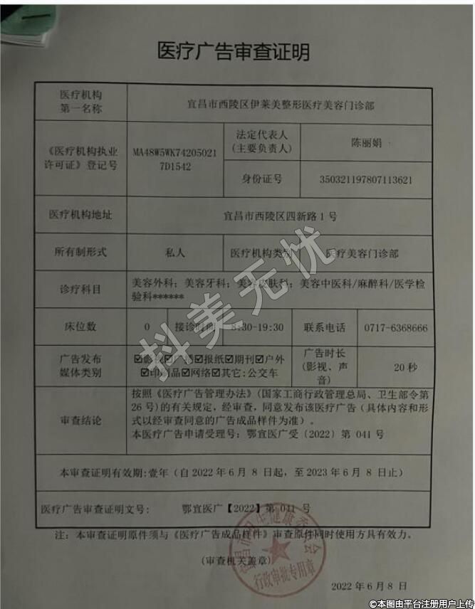 機(jī)構(gòu)名稱:宜昌市西陵區(qū)伊萊美整形美容門診部