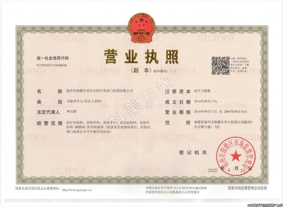 機構(gòu)名稱:福州鼓樓美貝爾醫(yī)療美容門診部