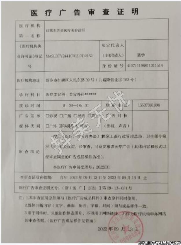 發(fā)證機關:新鄉(xiāng)市紅旗區(qū)衛(wèi)生健康委員會