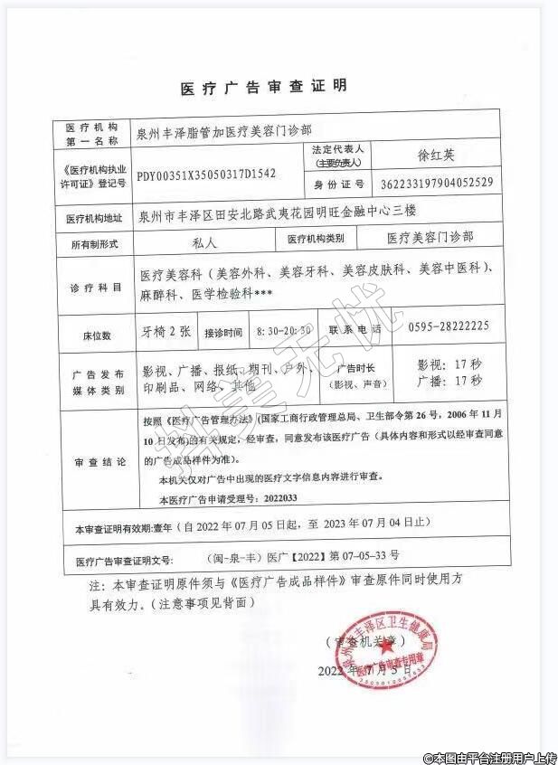 機(jī)構(gòu)名稱(chēng):泉州豐澤脂管加醫(yī)療美容門(mén)診部