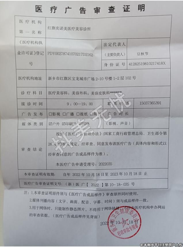 發(fā)證機(jī)關(guān):新鄉(xiāng)市紅旗區(qū)衛(wèi)生健康委員會(huì)