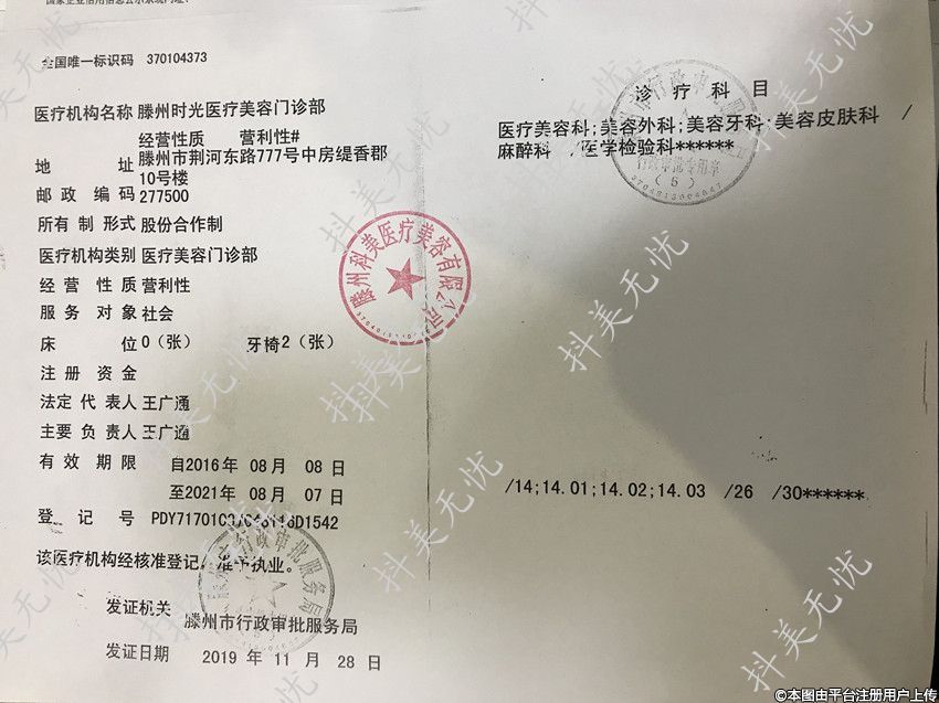 機構(gòu)名稱:滕州時光醫(yī)療美容門診部