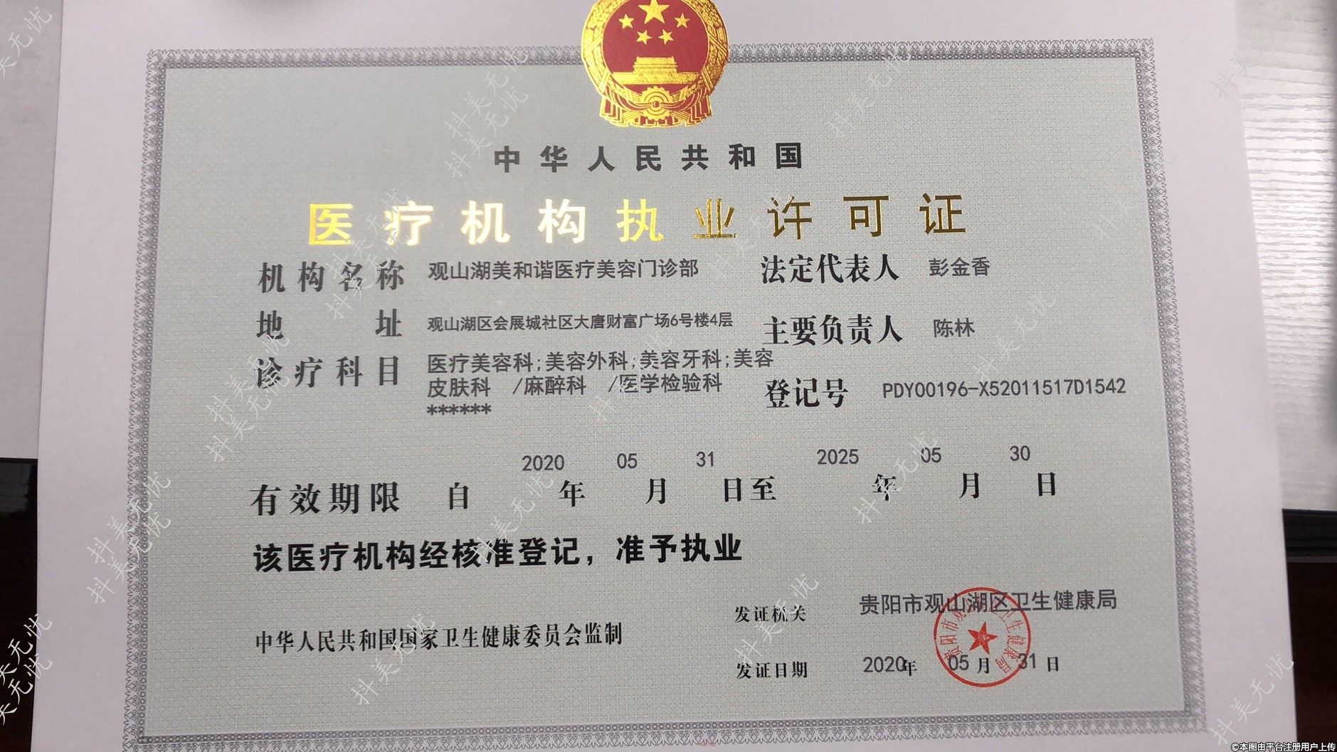 機(jī)構(gòu)名稱:觀山湖美和諧醫(yī)療美容門診部