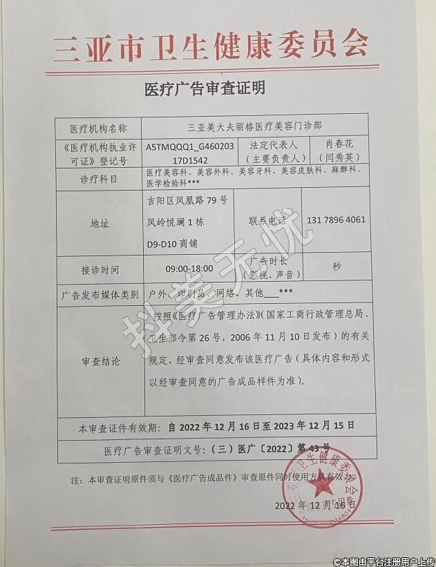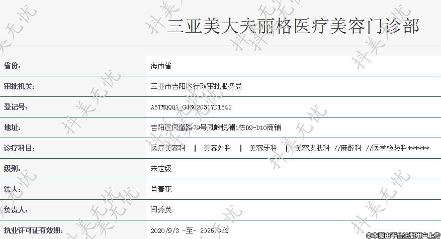 機構(gòu)名稱:三亞美大夫麗格醫(yī)療美容門診部