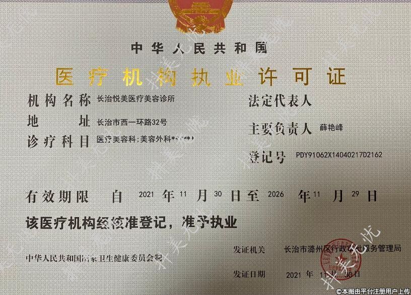 長治悅美醫(yī)療美容是經(jīng)長治衛(wèi)計委及長治市高新區(qū)衛(wèi)計委批準(zhǔn)設(shè)立的一所正規(guī)醫(yī)療整形美容機構(gòu)。