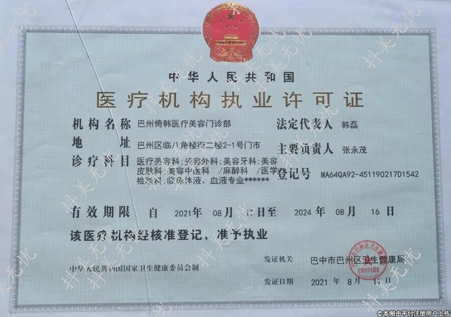 機(jī)構(gòu)名稱:巴州倚韓醫(yī)療美容門診部
