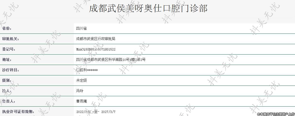 機構名稱:成都武侯美呀奧仕口腔門診部