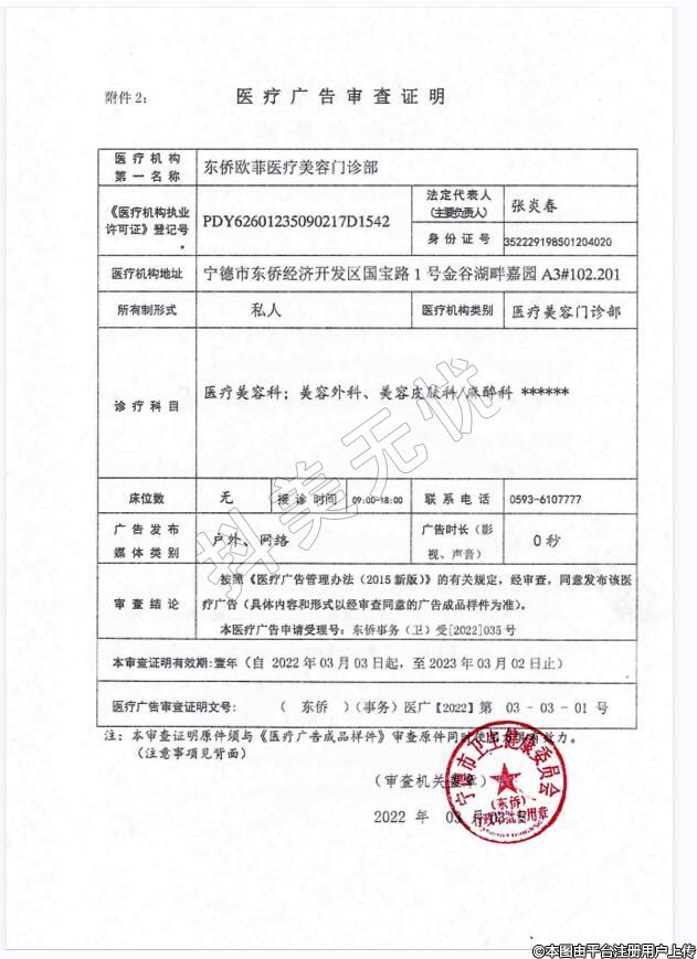 機構(gòu)名稱:東僑歐菲醫(yī)療美容門診部