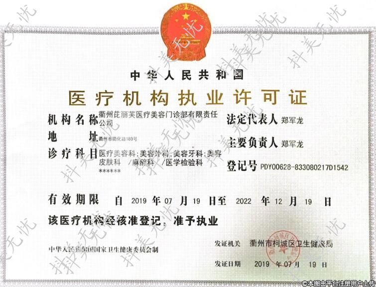 機構(gòu)名稱:衢州芘麗芙醫(yī)療美容門診部有限責任公司
