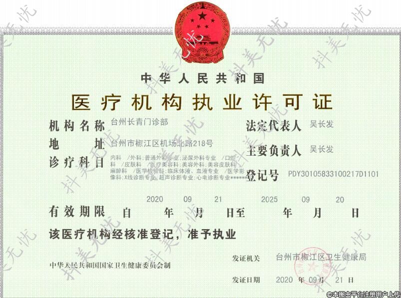 發(fā)證機關:臺州市椒江區(qū)衛(wèi)生健康局