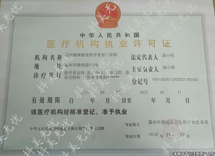 機構(gòu)名稱:溫州鹿城皇佳醫(yī)療美容門診部