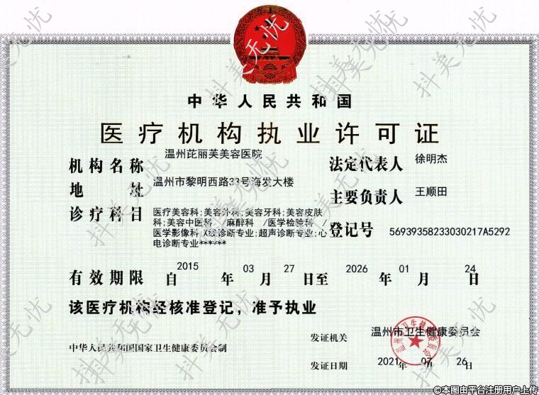 發(fā)證機關:溫州市衛(wèi)生健康委員會