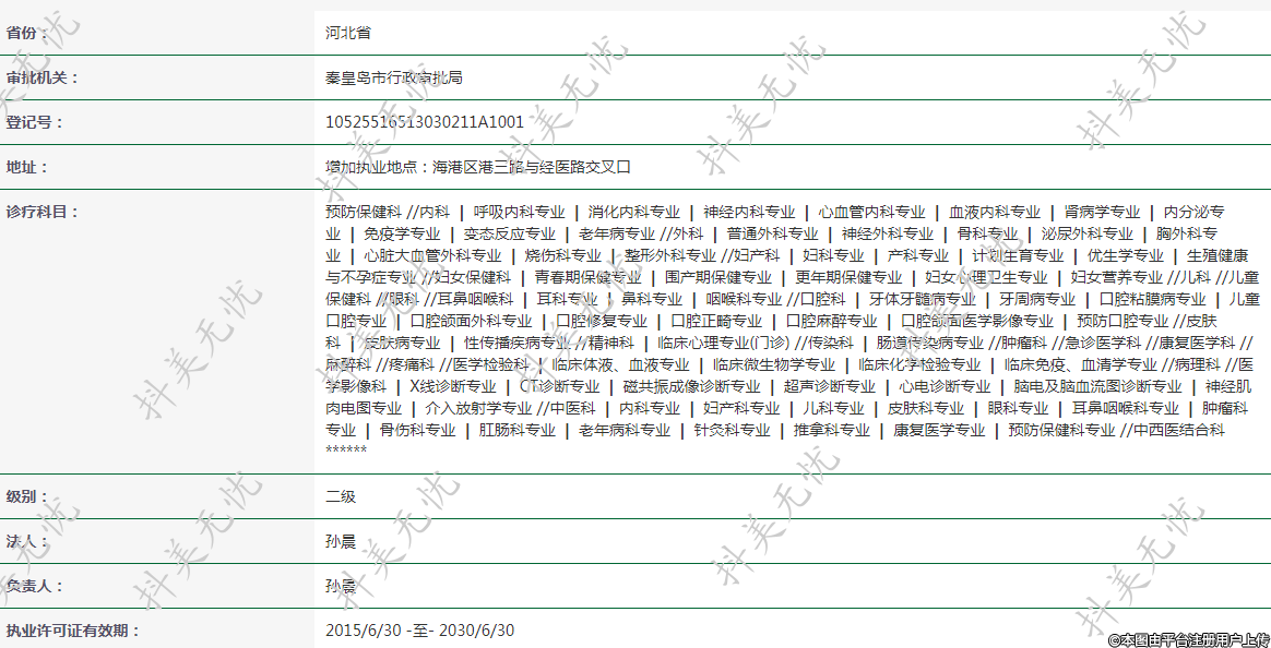 地址:增加執(zhí)業(yè)地點(diǎn):海港區(qū)港三路與經(jīng)醫(yī)路交叉口