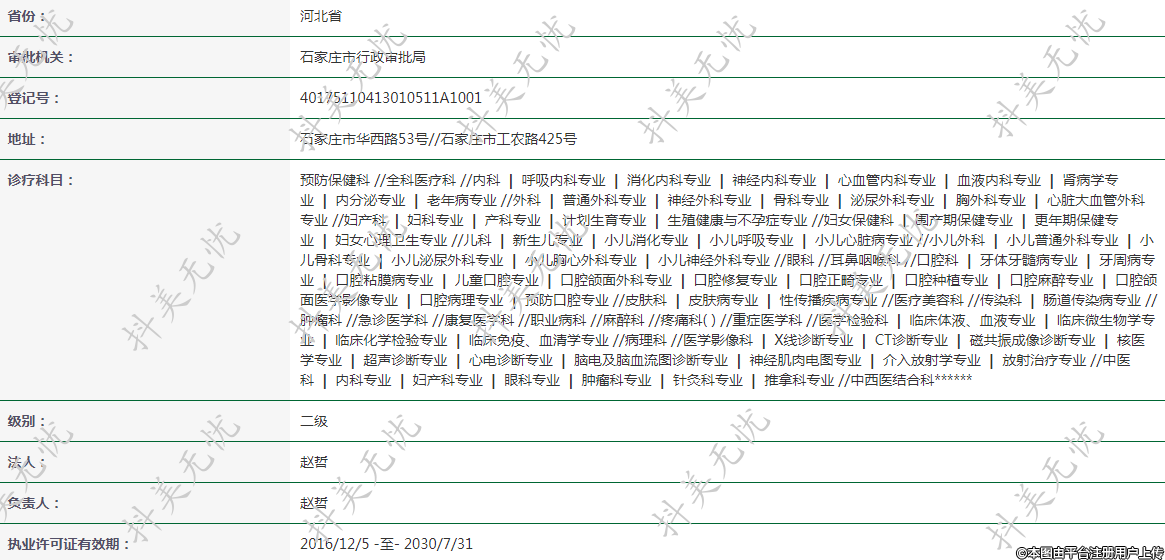 執(zhí)業(yè)許可證有效期:2016/12/5 -至- 2030/7/31