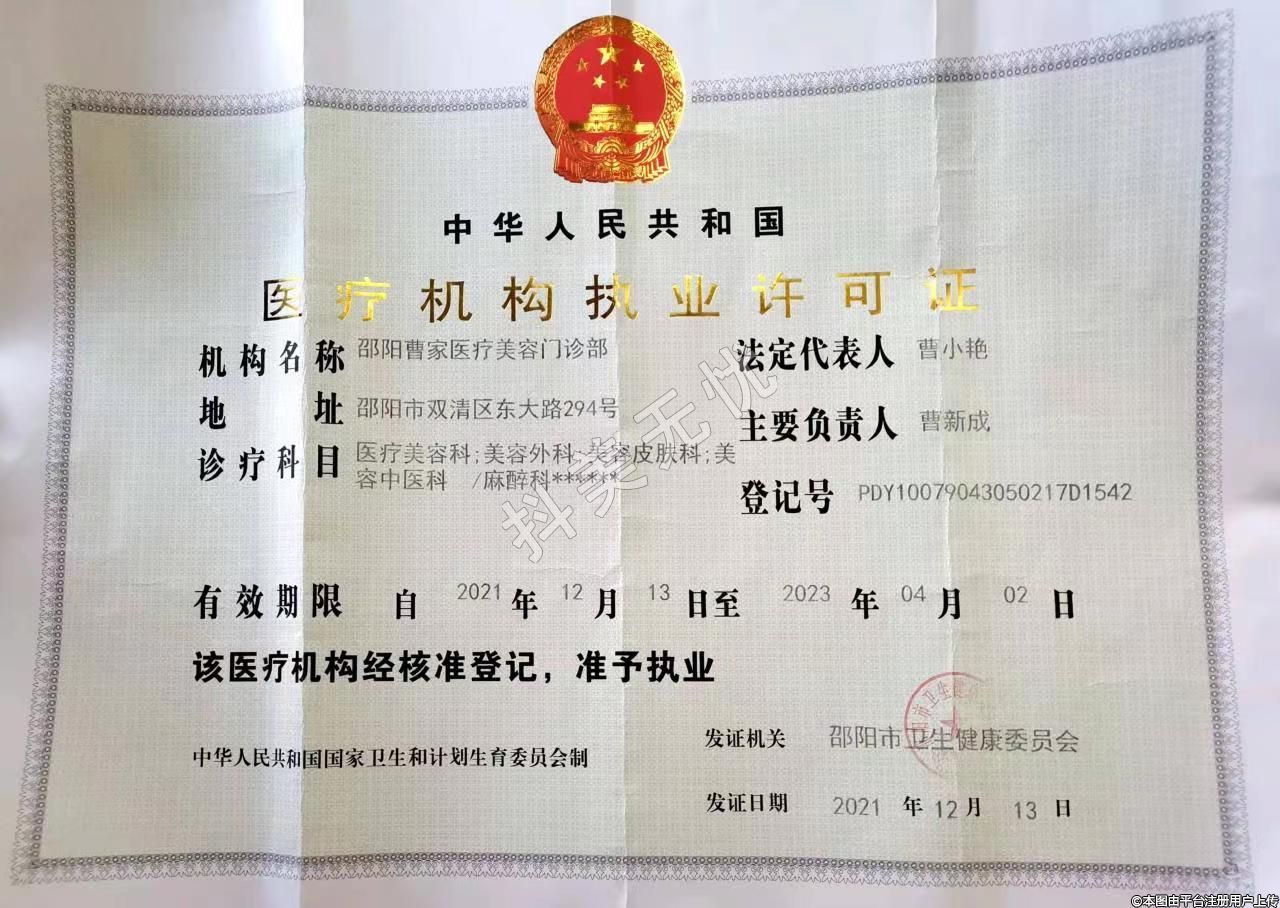 醫(yī)療機(jī)構(gòu)名稱:邵陽(yáng)曹家醫(yī)療美容門診部