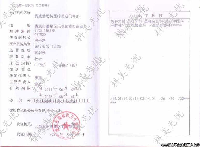 診療科目:美容外科;美容牙科;美容皮膚科;美容中醫(yī)科/麻醉科/醫(yī)學檢驗科/醫(yī)學影像科******/14.01;14.02;14 03;14.04/26/30/32******