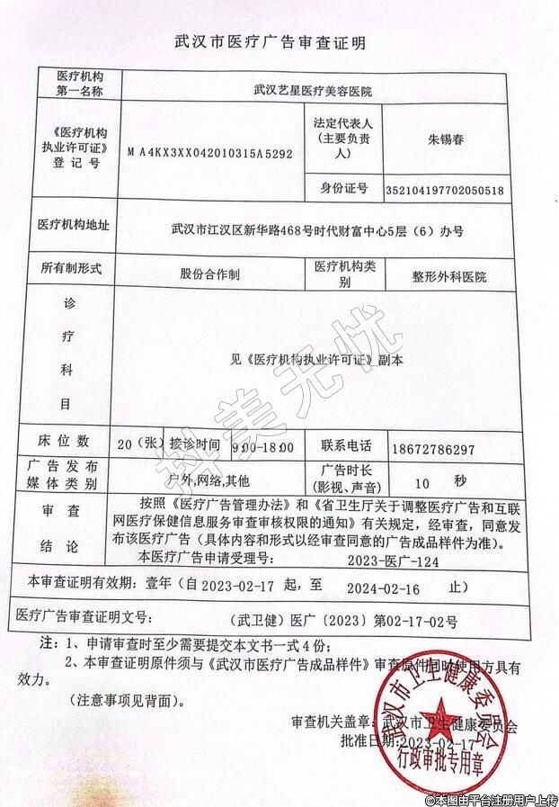 機構(gòu)名稱:武漢藝星醫(yī)療美容醫(yī)院