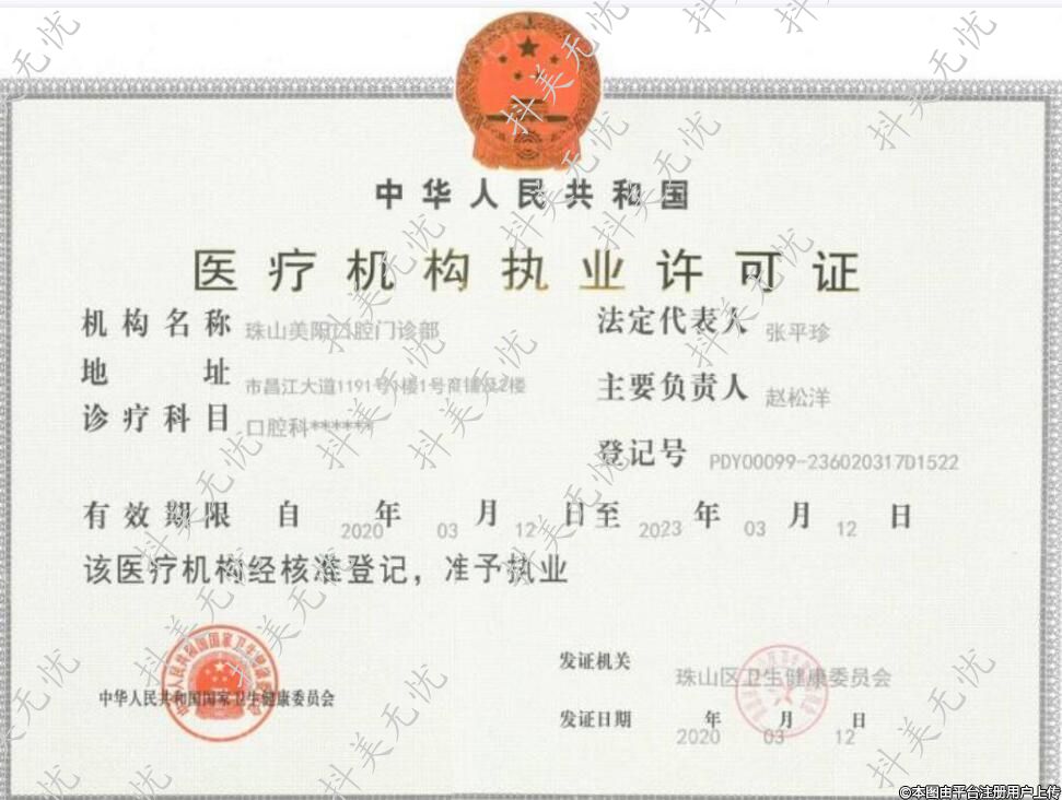機構(gòu)名稱:珠山美陽口腔門診部