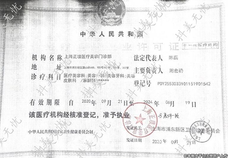 發(fā)證機關(guān):上海市浦東新區(qū)衛(wèi)生健康委員會