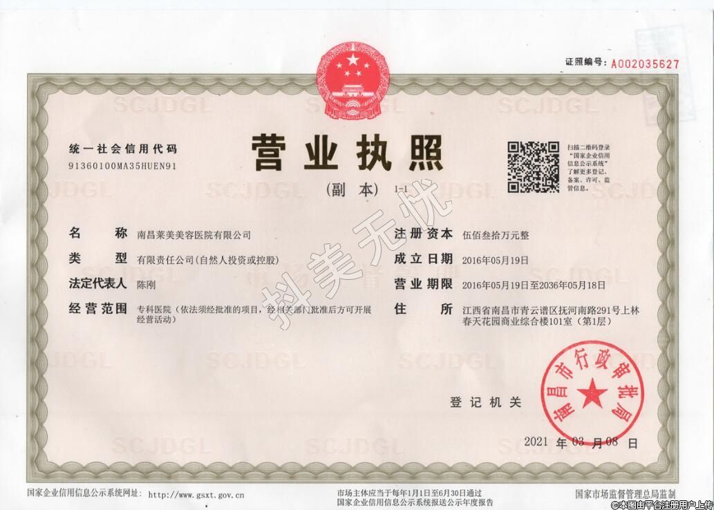 發(fā)證機關(guān):南昌市青云譜區(qū)衛(wèi)生健康委員會