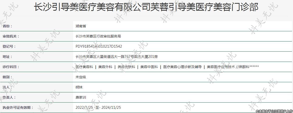 長(zhǎng)沙引導(dǎo)美醫(yī)療美容有限公司芙蓉引導(dǎo)美醫(yī)療美容門診部