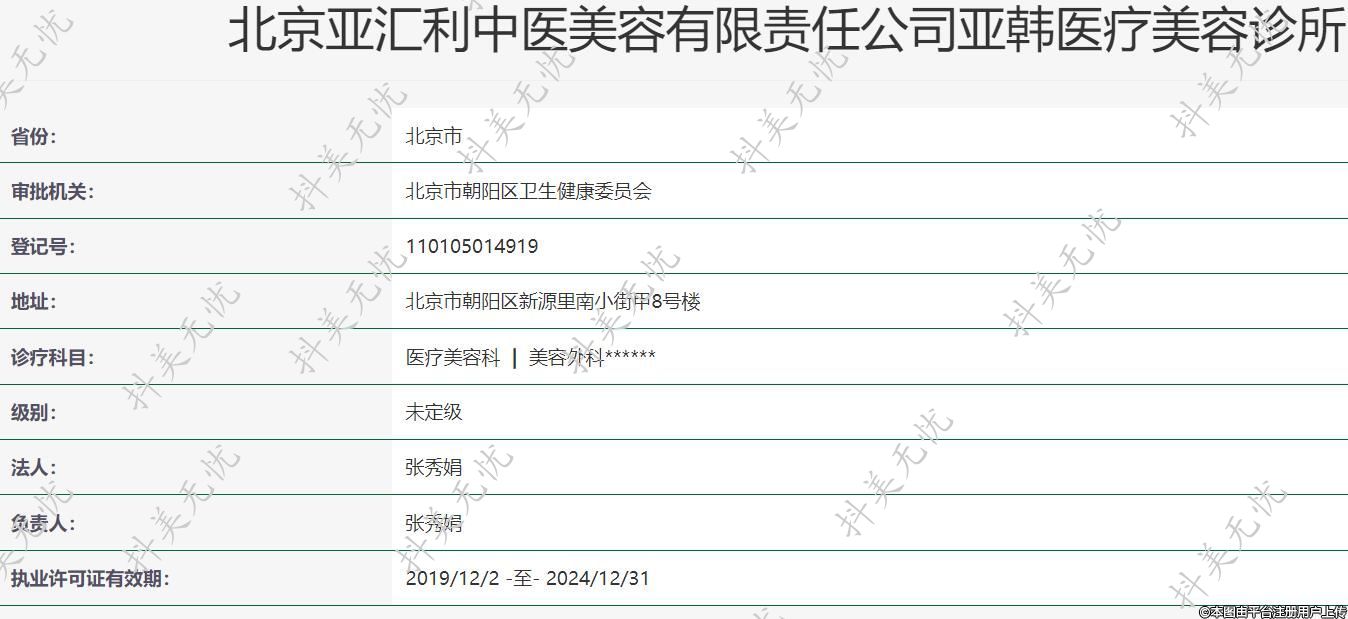 北京亞匯利中醫(yī)美容有限責(zé)任公司亞韓醫(yī)療美容診所
