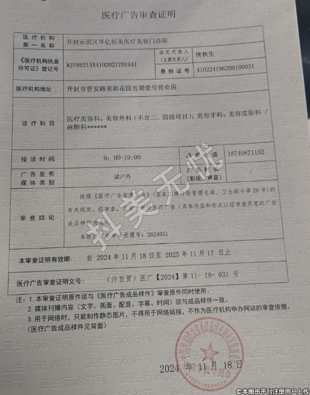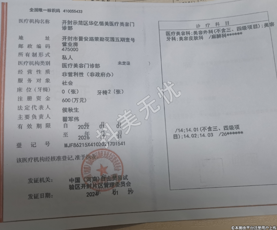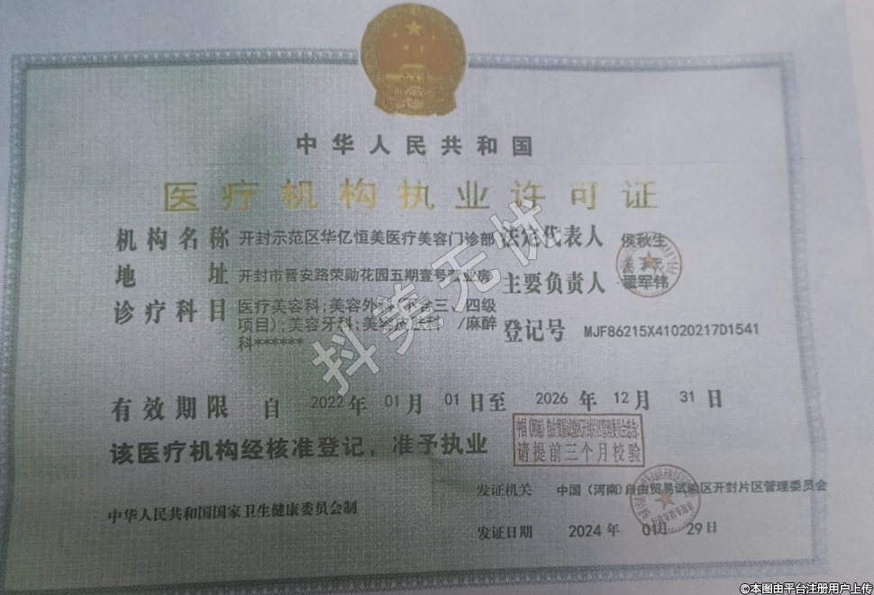 機構名稱:開封范區(qū)華億恒美醫(yī)療美容門診部