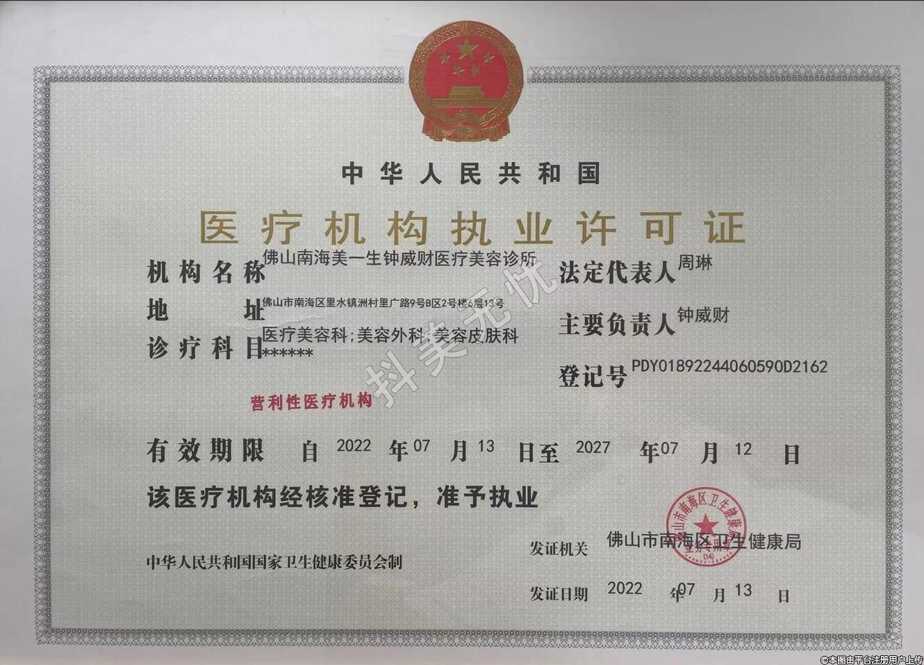 發(fā)證機(jī)關(guān):佛山市南海區(qū)衛(wèi)生健康局