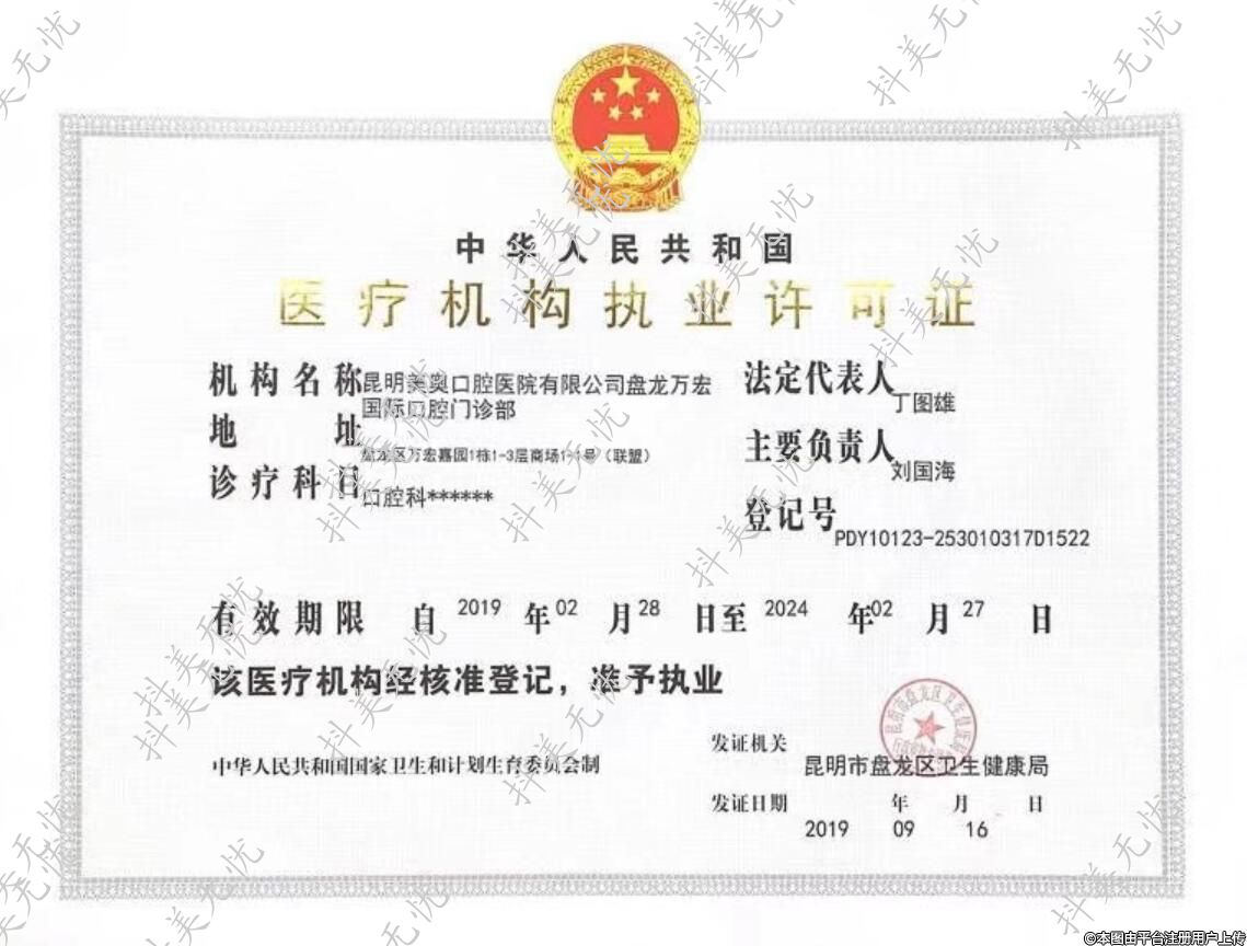 機(jī)構(gòu)名稱:昆明美奧口腔醫(yī)院有限公司盤龍萬宏國際口腔門診部