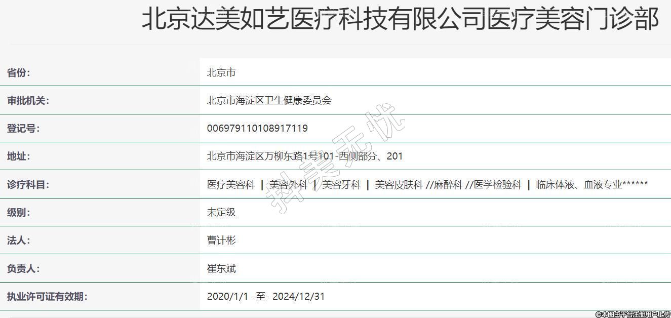 北京達(dá)美如藝醫(yī)療科技有限公司醫(yī)療美容門診部