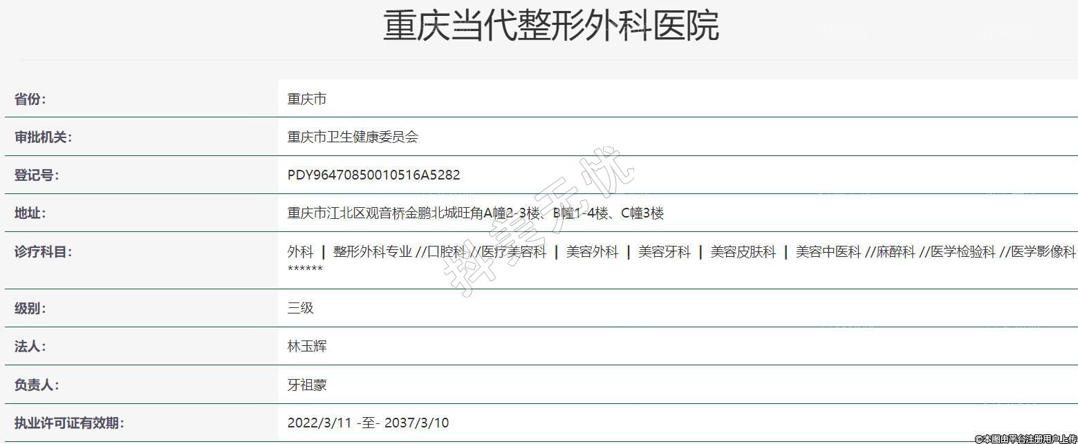 重慶當(dāng)代(三級)整形外科醫(yī)院,5A級醫(yī)療整形醫(yī)院;擁有四級手術(shù)資質(zhì),28項國家級專利技術(shù),20位高級職稱醫(yī)師領(lǐng)銜16大專業(yè)學(xué)組;100余家品牌方正品授權(quán),90項醫(yī)療質(zhì)量標準,德國萊茵TUV-SQS認證;十?dāng)?shù)載專業(yè)沉淀,塑美更安全!