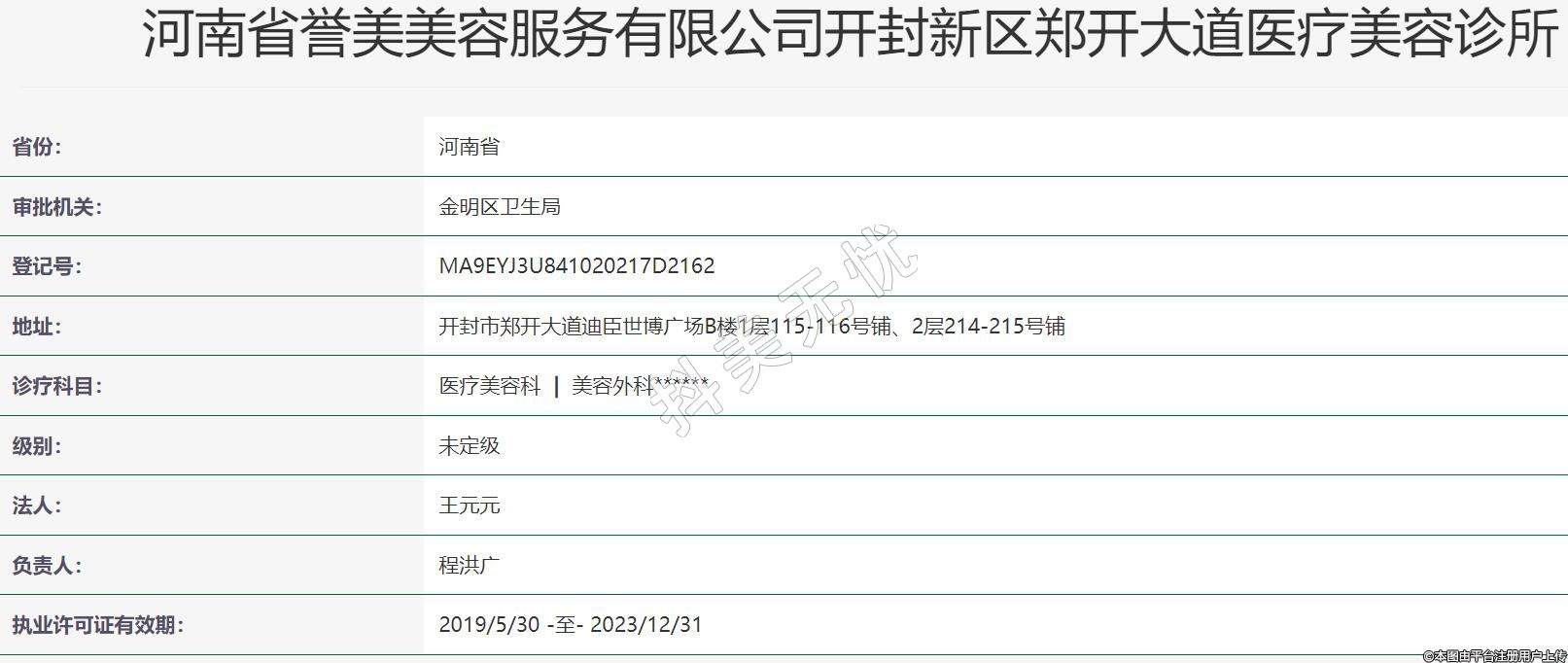 河南省譽(yù)美美容服務(wù)有限公司開封新區(qū)鄭開大道醫(yī)療美容診所