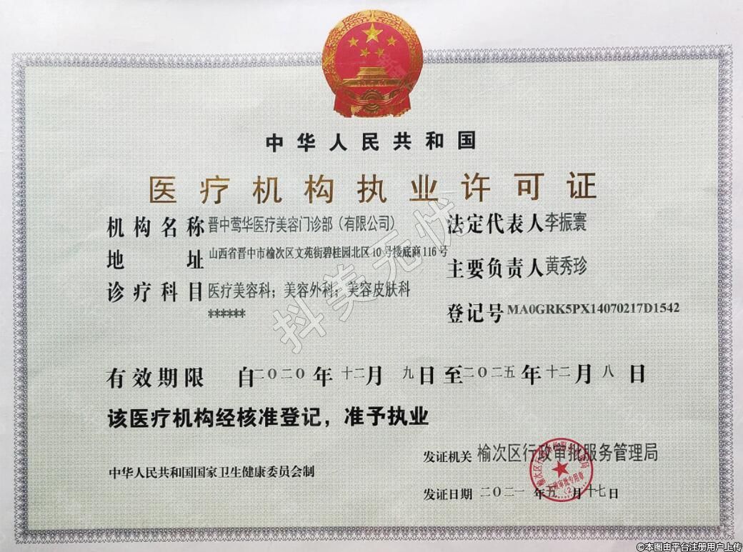 機(jī)構(gòu)名稱:晉中鶯華醫(yī)療美容門(mén)診部(有限公司)