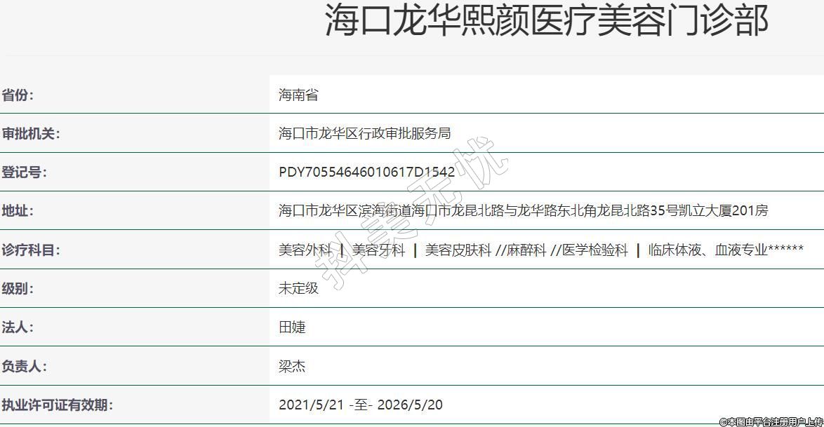 海南熙顏醫(yī)學(xué)美容2021-03-10成立,地址:??谑旋埲A區(qū)濱海街道??谑旋埨ケ甭放c龍華路東北角龍昆北路35號凱立大廈201房,診療科目:美容外科 | 美容牙科 | 美容皮膚科 //麻醉科 //醫(yī)學(xué)檢驗科 | 臨床體液、血液專業(yè)******