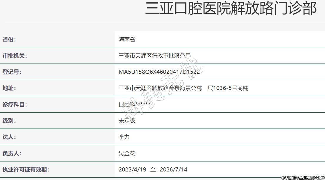 三亞口腔醫(yī)院解放路門診部2022-01-22成立,地址:三亞市天涯區(qū)解放路金泉海景公寓一層1036-5號商鋪,診療科目:口腔科******