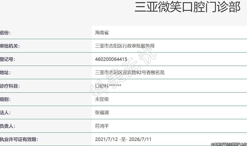 三亞微笑口腔醫(yī)院分支于海南微笑牙科。是一所具有現(xiàn)代化,專(zhuān)業(yè)化,人性化,國(guó)際化的牙科連鎖機(jī)構(gòu)。位于三亞市迎賓路92號(hào)香榭名苑大廈。由海南微笑牙科聯(lián)盟斥資,經(jīng)海南省三亞市衛(wèi)生局批準(zhǔn)成立一家集醫(yī)療、科研、預(yù)防、保健為一體的口腔連鎖專(zhuān)科醫(yī)院,并作為海南微笑牙科聯(lián)盟的旗艦店。其旗下有三亞微笑牙科、樂(lè)東微笑牙科、黃流微笑牙科、九所微笑牙科、東方微笑牙科五家連鎖機(jī)構(gòu);其創(chuàng)始人為張福湖先生,其宗旨是讓微笑見(jiàn)證品質(zhì),讓牙科融入藝術(shù)。