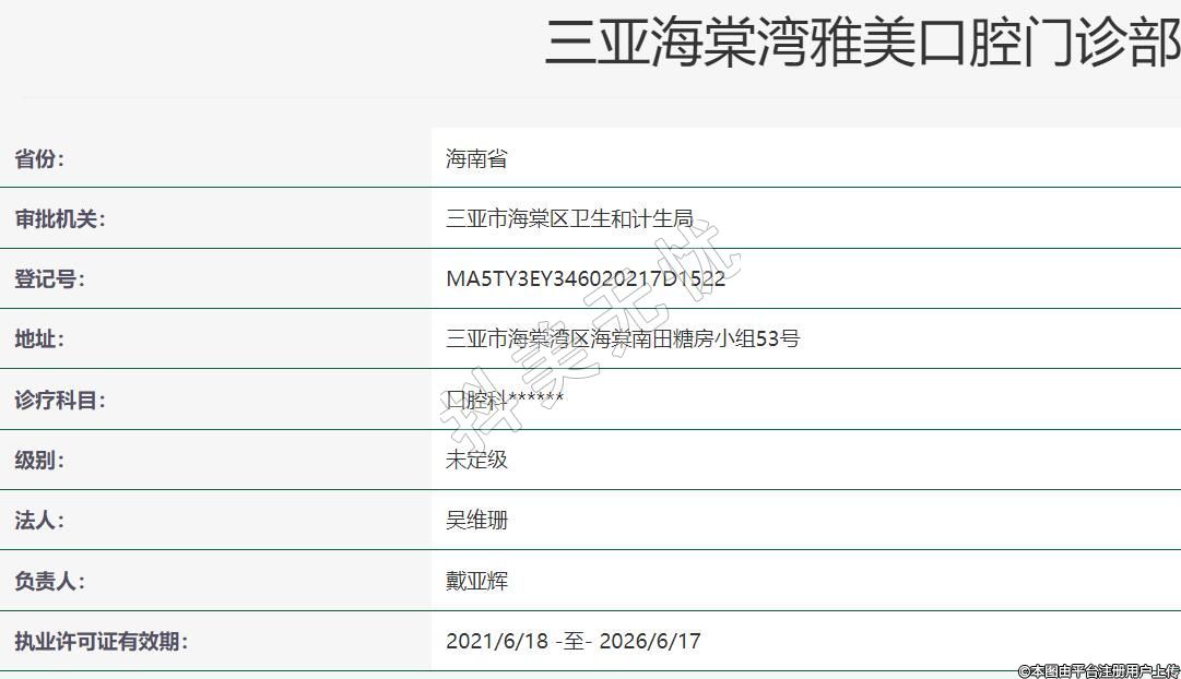 審批機(jī)關(guān):三亞市海棠區(qū)衛(wèi)生和計(jì)生局