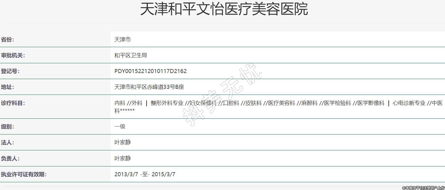 天津文怡醫(yī)療美容2004-02-25成立,經(jīng)營范圍:醫(yī)療美容、內(nèi)科、皮膚科、中醫(yī)科、婦女保健、臨床檢驗、心電、整形外科、口腔科、麻醉科。(以上經(jīng)營范圍涉及行業(yè)許可的憑許可證件,在有效期限內(nèi)經(jīng)營,國家有專項專營規(guī)定的按規(guī)定辦理)