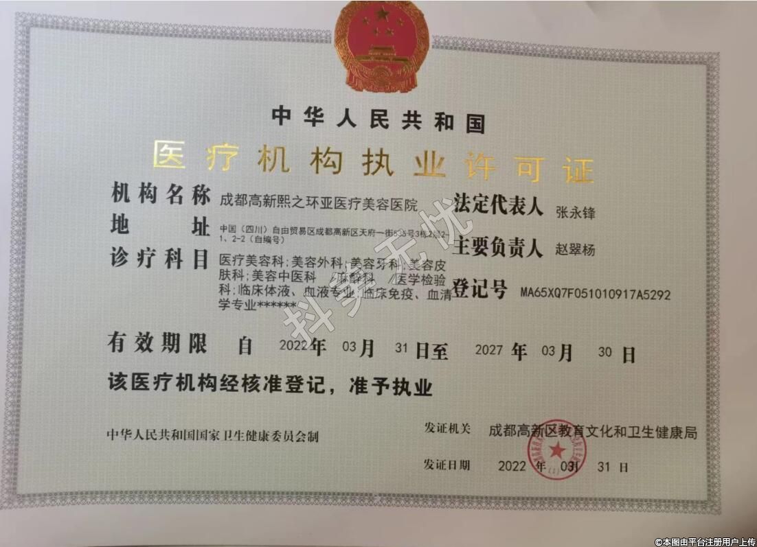 機構名稱:成都高新熙之環(huán)亞醫(yī)療美容醫(yī)院