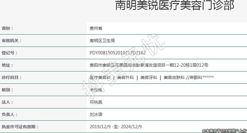 貴陽美銳醫(yī)療美容2019-04-04成立,地址:貴陽市南明區(qū)花果園后街彭家灣改造項目一期12-20棟1層012號,診療科目:醫(yī)療美容科 | 美容外科 | 美容牙科 | 美容皮膚科 //麻醉科******