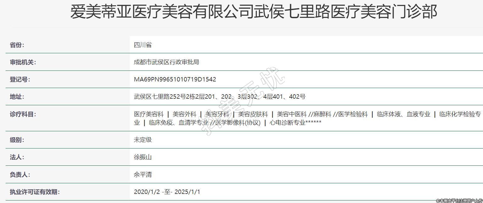 愛美蒂亞醫(yī)療美容有限公司武侯七里路醫(yī)療美容門診部