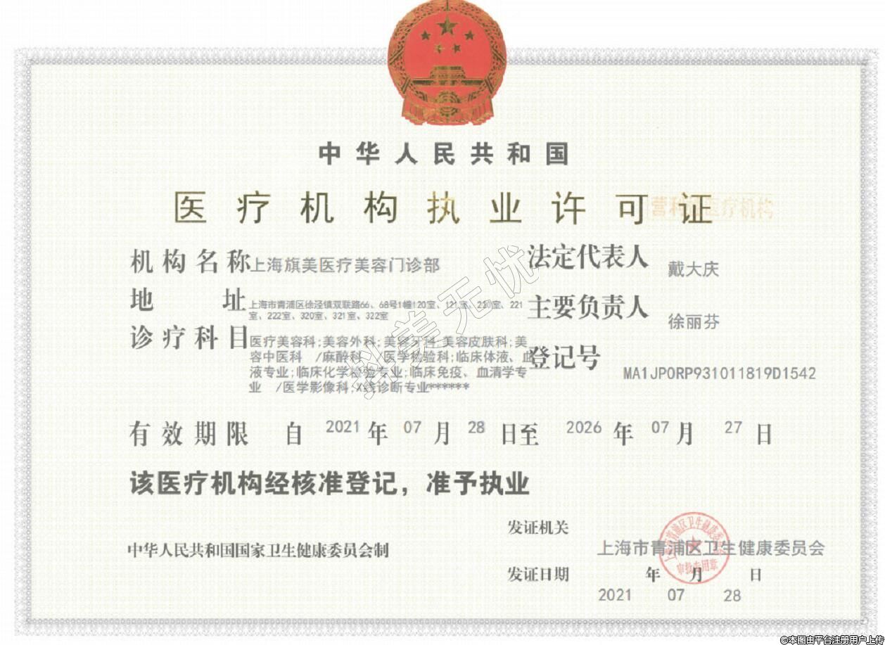 機構(gòu)名稱:上海旗美醫(yī)療美容門診部