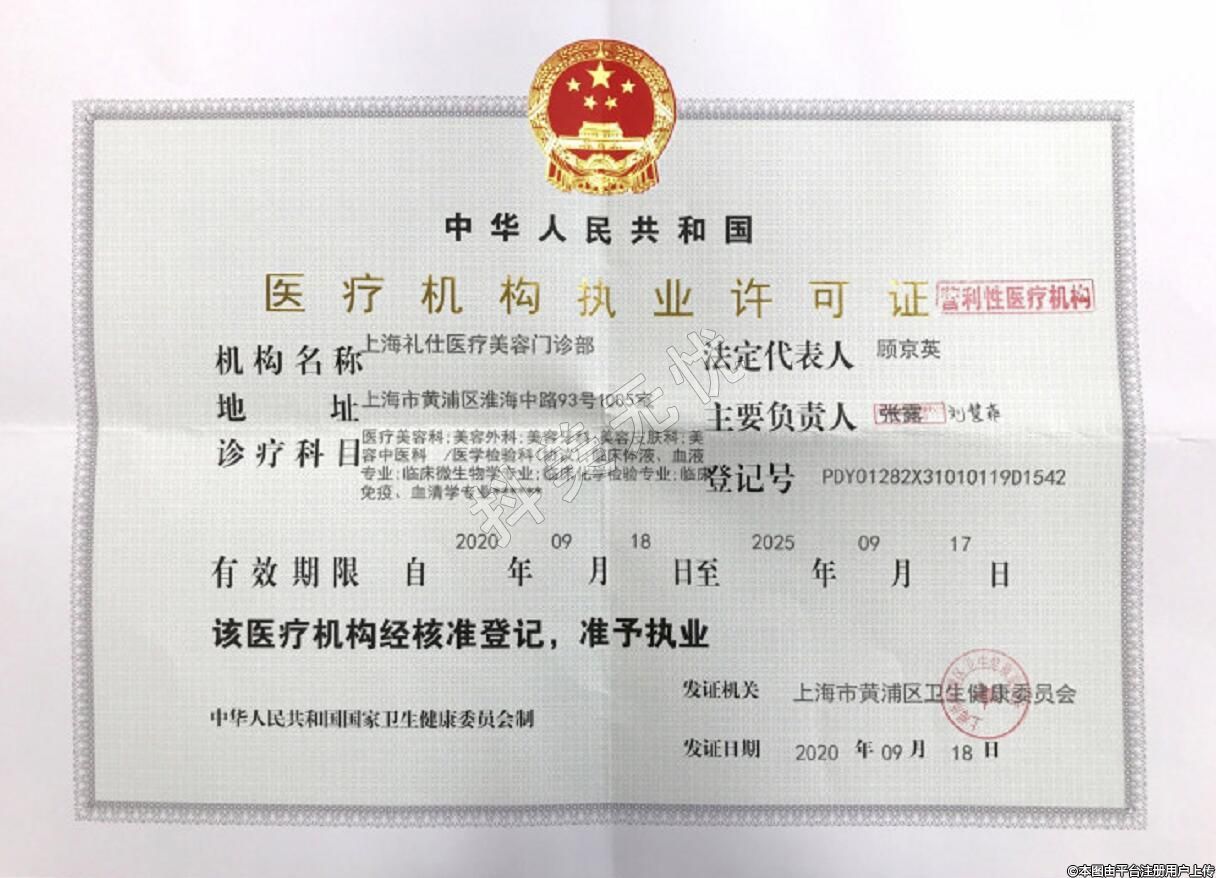 發(fā)證機(jī)關(guān):上海市黃浦區(qū)衛(wèi)生健康委員會(huì)