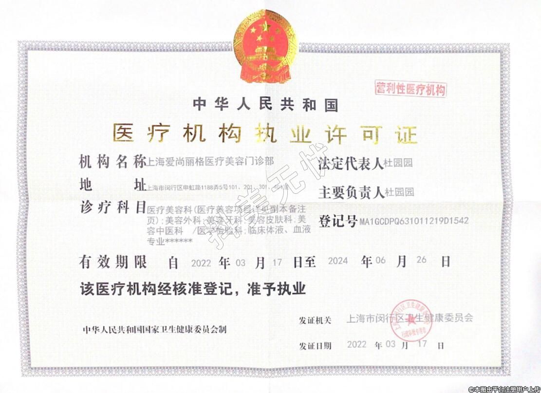 機構名稱:上海愛尚麗格醫(yī)療美容門診部