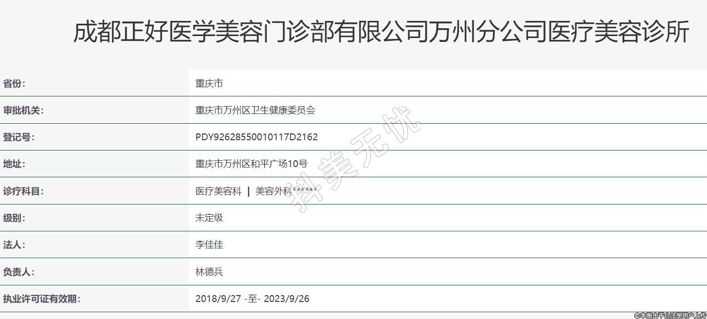 成都正好醫(yī)學(xué)美容門診部有限公司萬州分公司醫(yī)療美容診所
