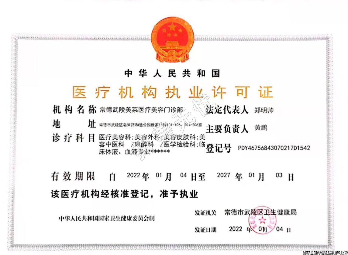 機(jī)構(gòu)名稱:常德武陵美萊醫(yī)療美容門診部