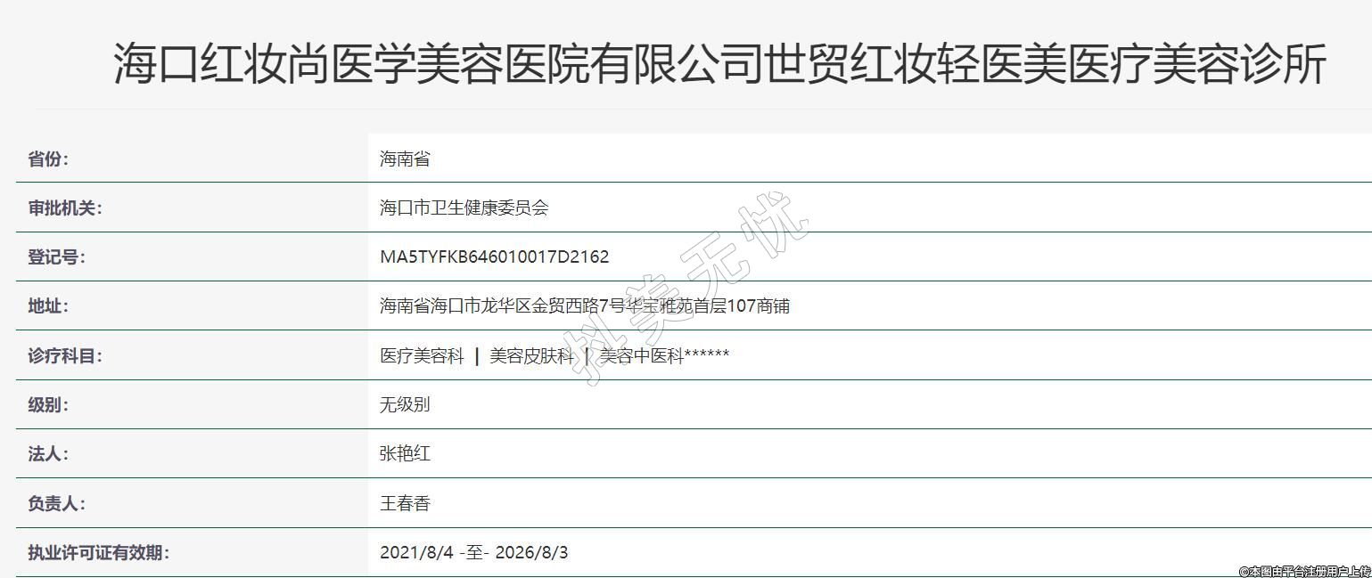 海口紅妝尚醫(yī)學(xué)美容醫(yī)院有限公司世貿(mào)紅妝輕醫(yī)美醫(yī)療美容診所