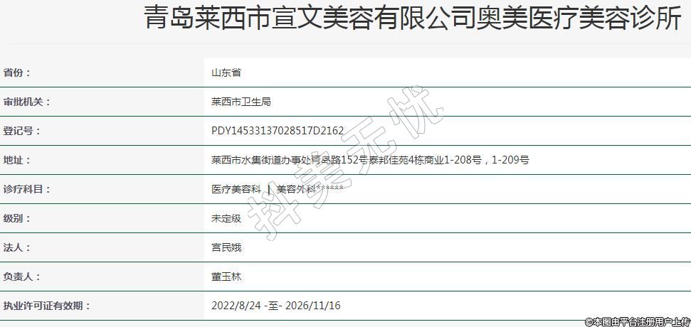 青島萊西市宣文美容有限公司奧美醫(yī)療美容診所